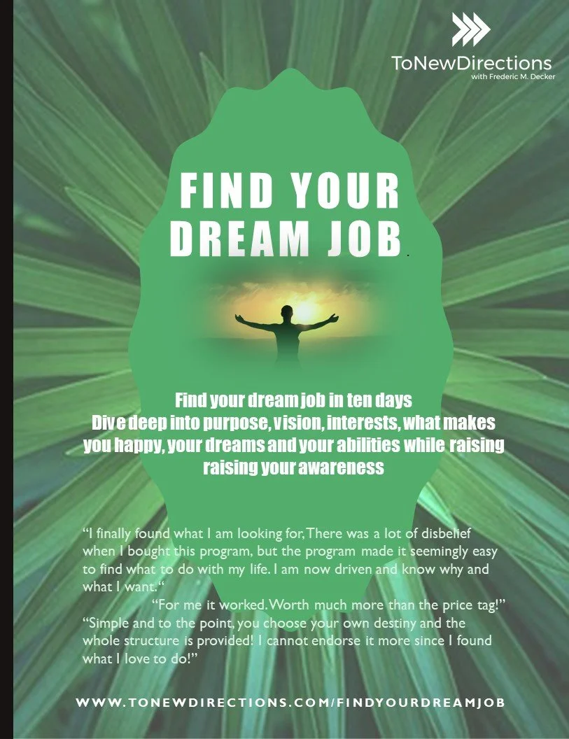 This unique method gives you a proven framework (below) to get to your most inner desires, your interests, your needs, your wishes, and your vision through structure. Structure to get a clear view and structure to incite creativity. Structure to remember and structure to look at the past. Structure to value emotionally and rationally. It gives you the opportunity and structure to figure out what your vocation is and what your dream job is. It can do that because it will take what is the most important to you to creative job pictures. You will have more clarity of mind, a clear understanding of what you are seeking, and how you can implement it! Check out the steps below.